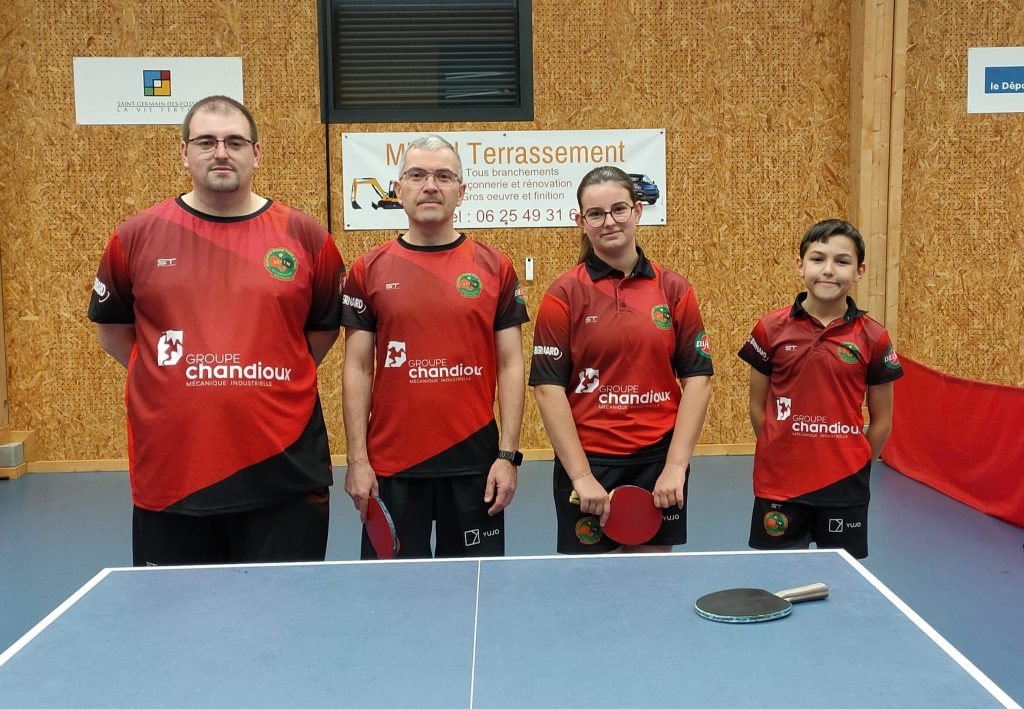 En déplacement à Saint Germain des Fossés, le capitaine Christopher a bien essayé de montrer la voie à ses coéquipiers en remportant ses 3 simples, mais malgré toute leur combativité, Méline, Adam et Jean-Louis auront du céder face à des adversaires plus rigoureux. Le double Christopher – Jean-Louis fait le 4ème point.