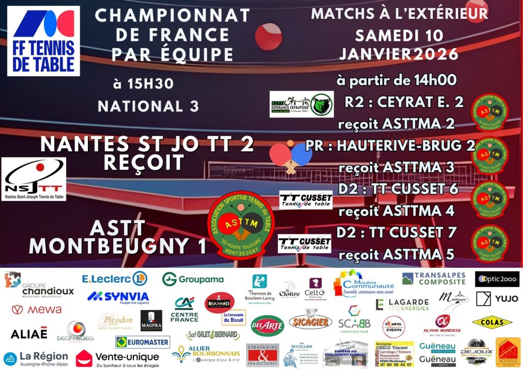 L’ensemble des scores est à suivre à partir de 14h00 le samedi en direct sur asttma.fr.
